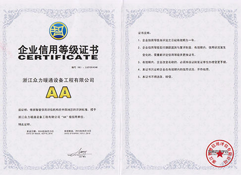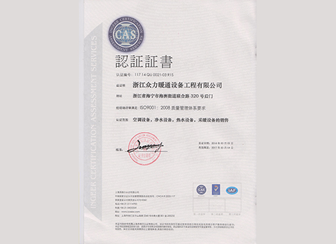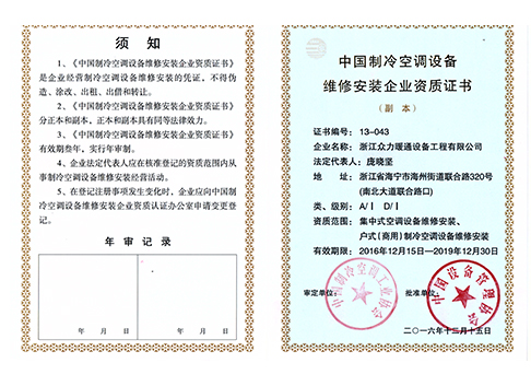 Zhejiang Zhongli HVAC was established in 2004. The company has more than 100 employees and more than 50 professional and technical personnel. Among them, there are 3 national-level project managers, 2 senior refrigeration technicians, and 20 senior refrigeration installers. Yuren, the company's middle and senior professional titles of engineering and engineering management staff, a total of more than 10 people, is a professional HVAC central air conditioning, heating, hot water, fresh air, water treatment design, installation, commissioning, maintenance, maintenance in one of the large warm Comfortable home business. The company now has the first-class qualification for refrigeration equipment installation of China Equipment Management Association and the first-class qualification for maintenance. At the same time, Gree, McQuay and other well-known manufacturers of agent qualification and authorized installation and maintenance qualifications.
